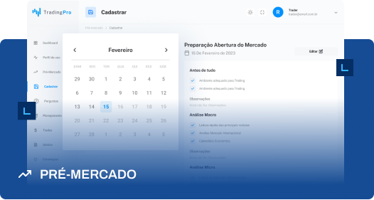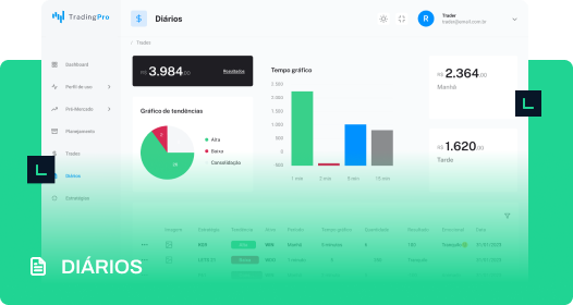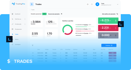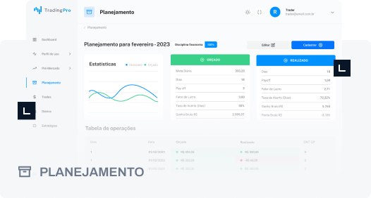 A TradingPro é uma plataforma de planejamento, organização e métricas avançadas para Day Traders de Mini Índice e Mini Dólar.